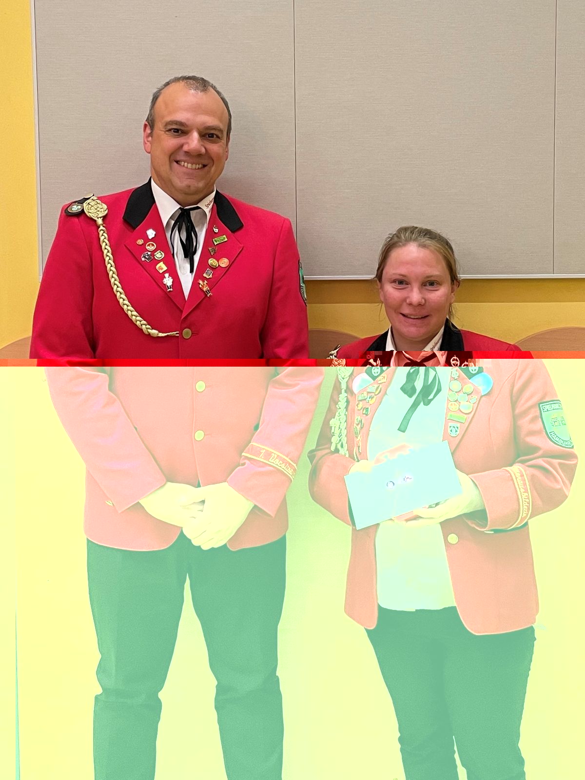 Für langjährige Mitgliedschaft im Spielmannszug wurden Zoe Schwerdtfeger mit der Ehrennadel in bronze (15 Jahre) sowie Helmut Brümmer mit der Ehrennadel in gold 35 ausgezeichnet.
