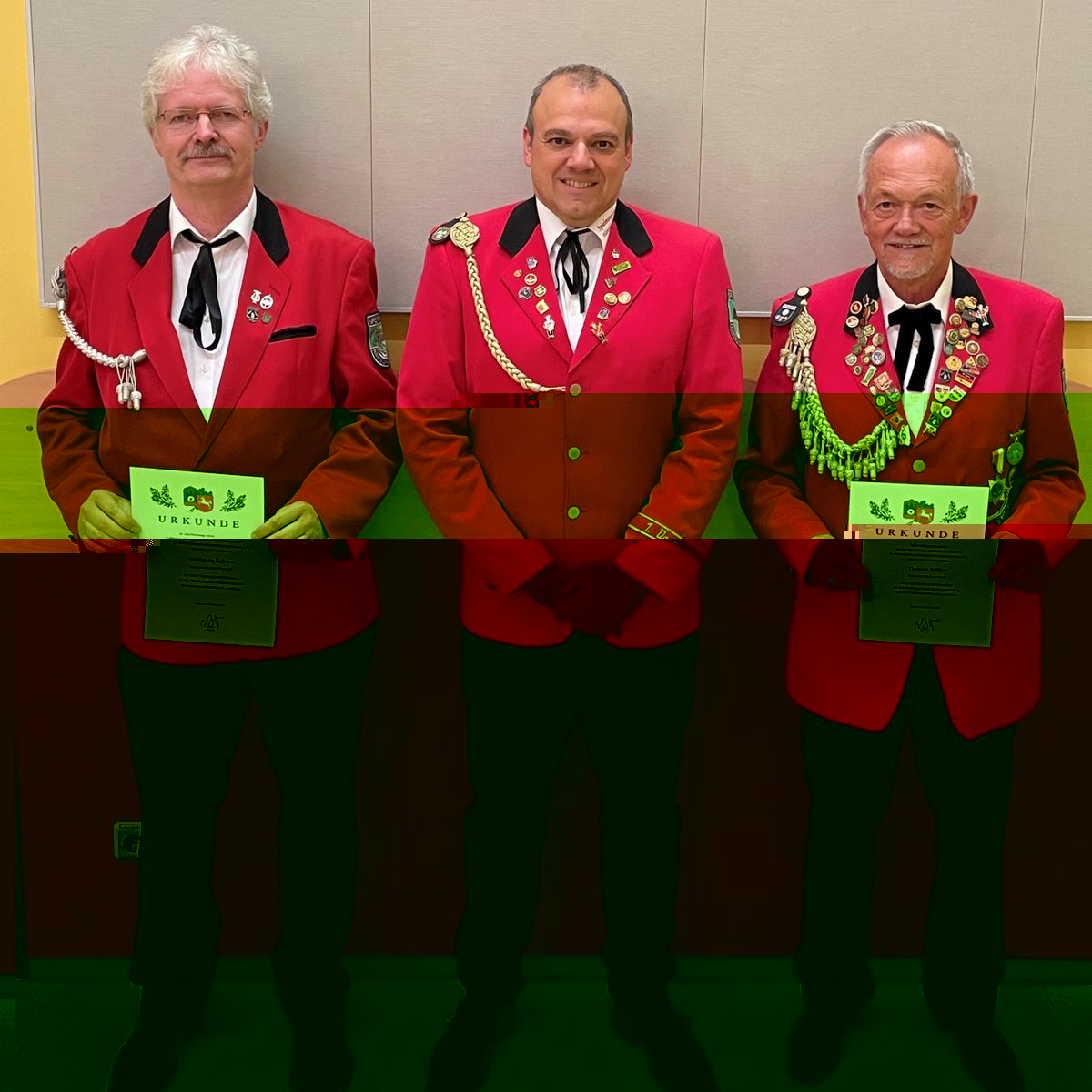 Vom NSSV (Niedersächsischen Sportschützenverband) wurden Wolfgang Schorn für 5jährige aktive Tätigkeit als Musiker mit der kleinen Verdienstnadel in Bronze sowie Ortwin Höfer für 50jährige aktive Tätigkeit als Musiker mit der großen Verdienstnadel in Gold ausgezeichnet.