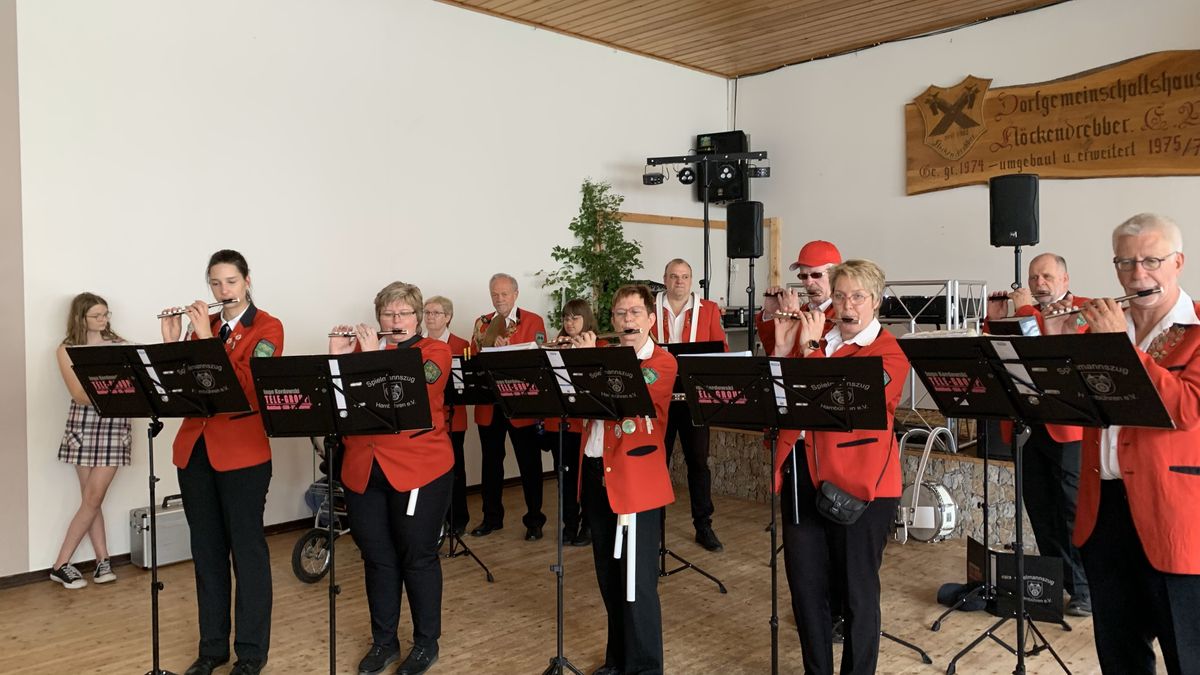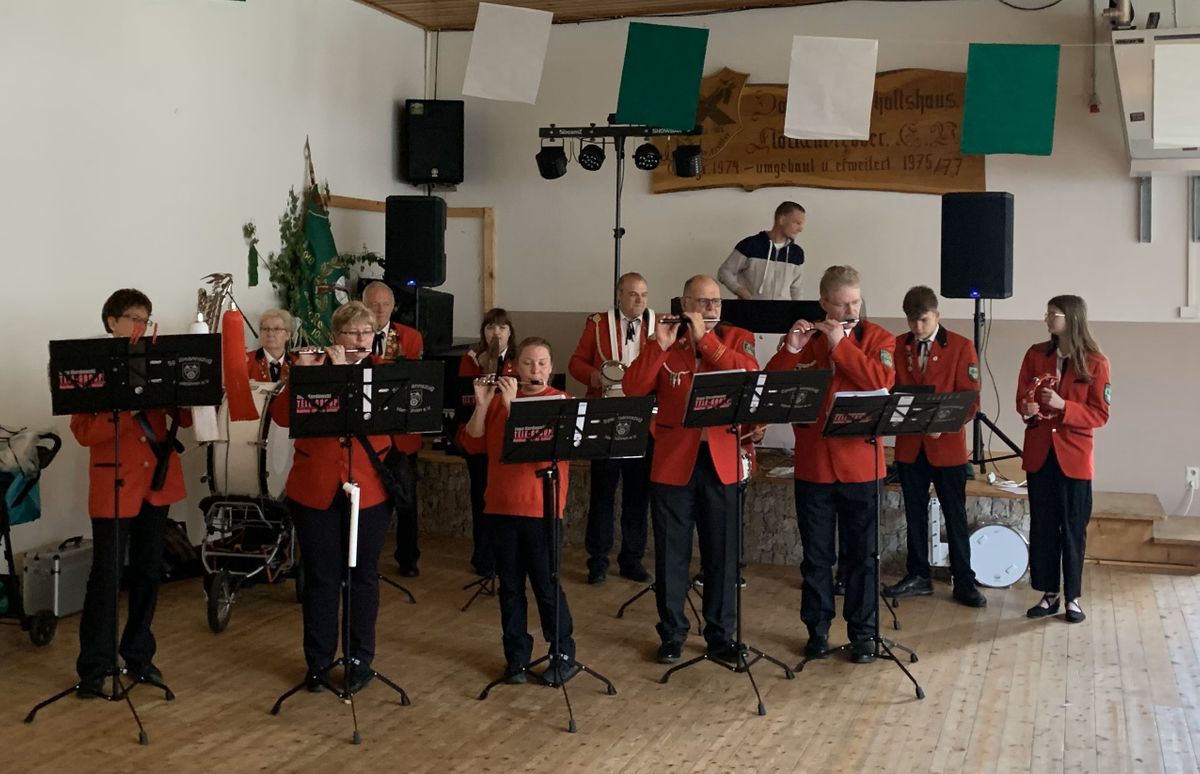 Der Spielmannszug vor dem Auftritt im Dorfgemeinschaftshaus.