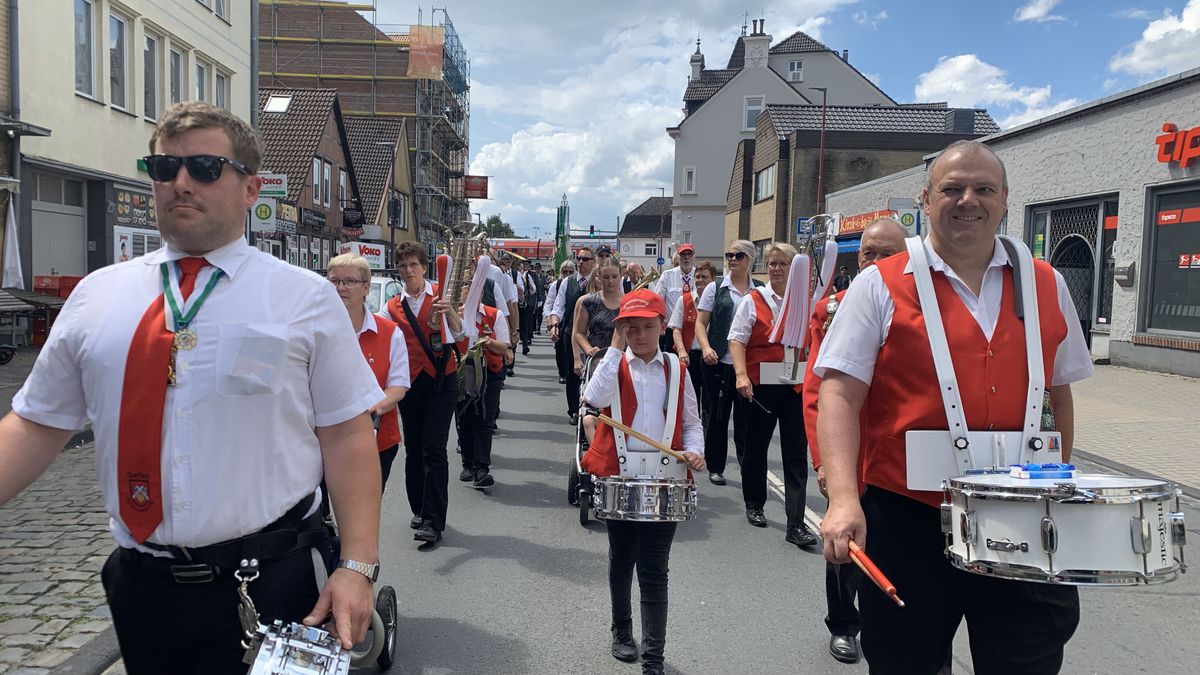 Die Musiker spielen zum Schützenfestauftakt in der Neustadt