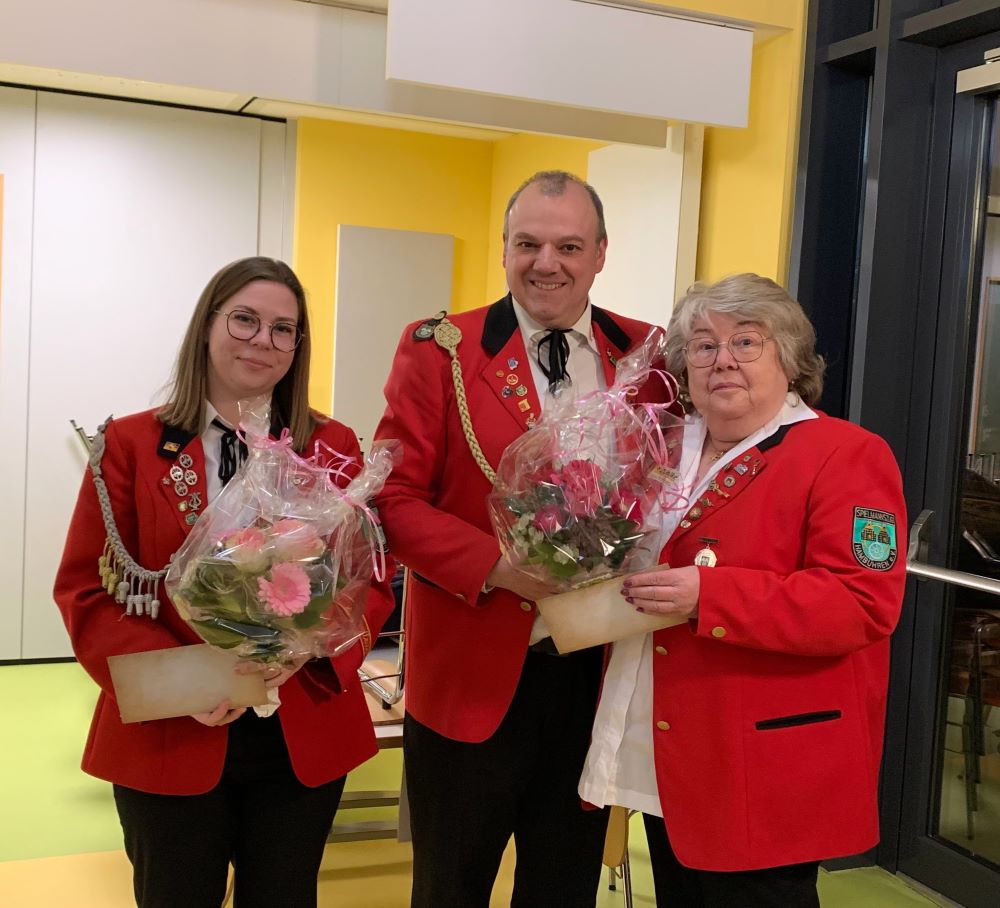 Für langjährige Mitgliedschaft im Spielmannszug wurden Bernd Klein, Lars Schwerdtfeger, Astrid Gerdes und Hans Mönnich mit einer Urkunde und Ehrennadel geehrt. Für 50jährige Mitgliedschaft wurden dem Ehrenvorsitzenden, Lothar Franciscy, sowie dem Schriftführer, Ortwin Höfer, ein Präsentkorb überreicht.
