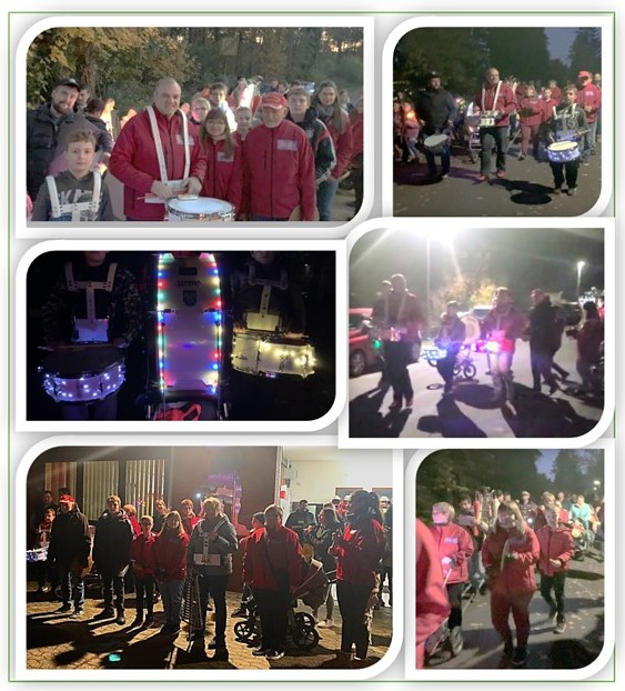 Gruppenbild des Spielmannszuges beim Einsammeln der Kinder